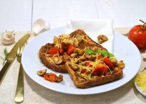 Hartige wentelteefjes met tomaat en champignon