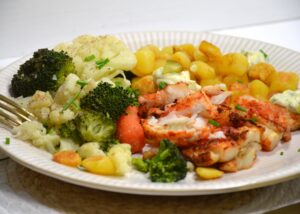 Gestoomde groenten met koolvisfilet en krieltjes