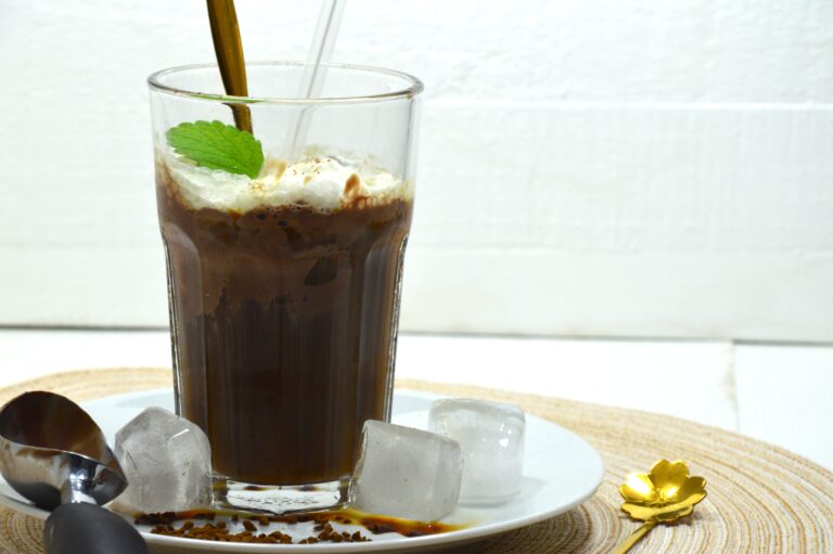 - Maak je iced coffee helemaal af met de opgeklopte melk.