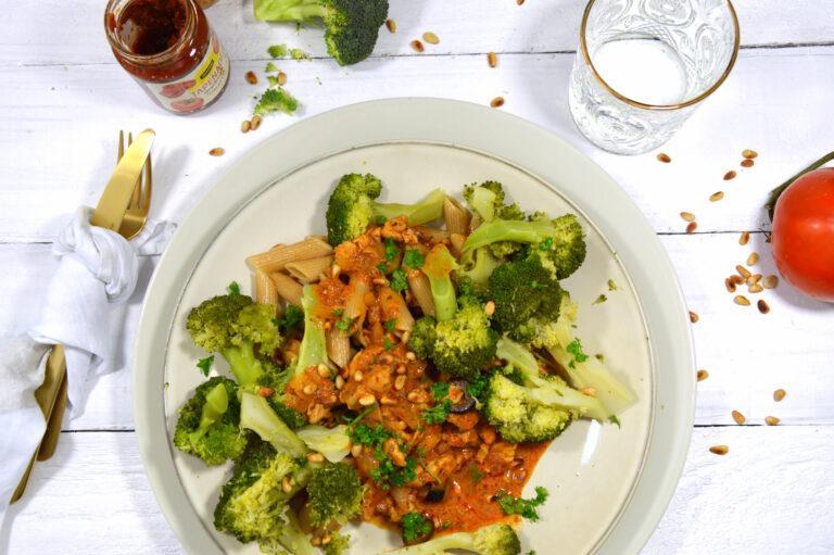 - Kook ondertussen de pasta volgens de aanwijzingen op de verpakking